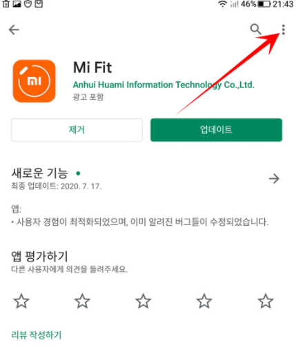2. Mi fit 앱의 자동 업데이트를 해제한다
