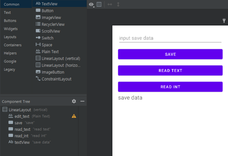 먼저 레이아웃은 그림과 같이 대충 정의한다 (참고로 main_activity.xml이다)