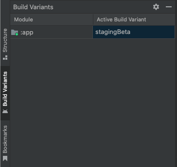 "Build Variants" 라는 것이 있다. 이를 클릭하면 다음과 같은 창이 뜬다