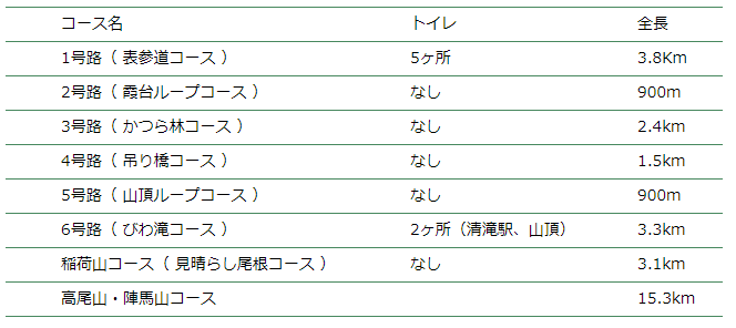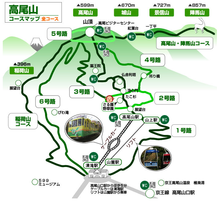 타카오산에는 여러 등산루트가 존재합니다.