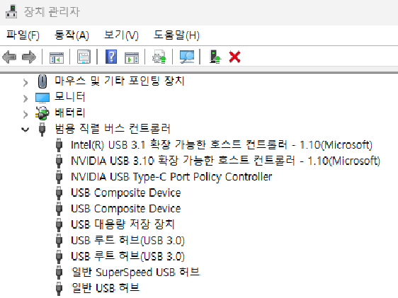 그리고 다음과 같이 [범용 직렬 버스 컨트롤러]를 엽니다.