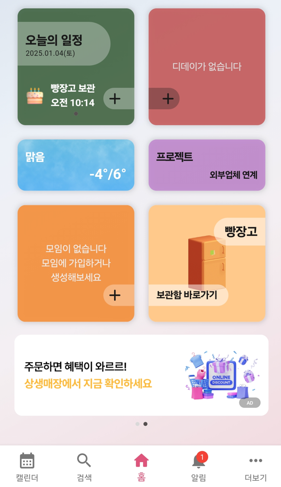 앱을 열고 밑에 내려가면 다음과 같은 빵장고를 볼 수 있습니다.
