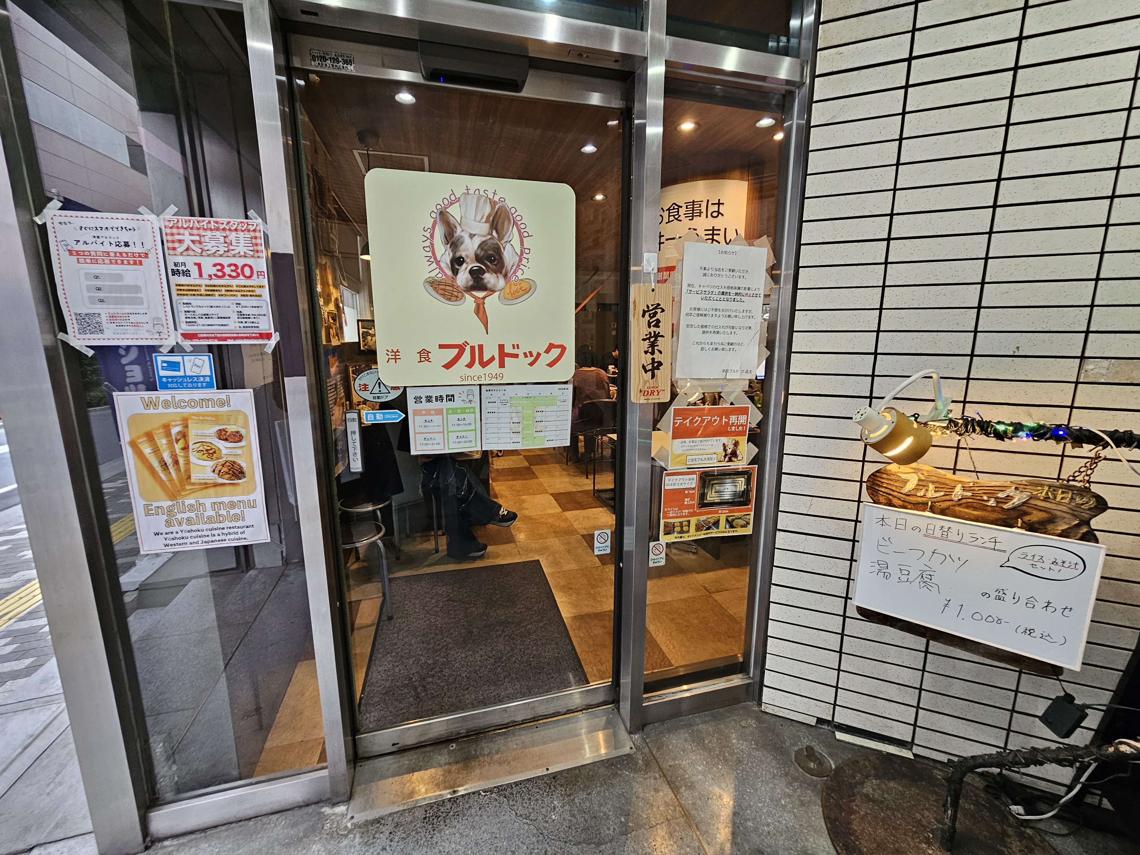 오오이마치 역에서 도보 1분 거리에 위치한 불독(Bulldog)은 1949년 창업한 역사 깊은 양식당입니다.