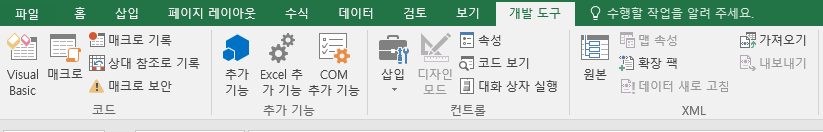 4. OK를 누르고 돌아가면 탭에 "개발"이라는 탭이 보입니다.