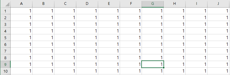 즉, "A1" ~ "A10"까지 "1"이라는 숫자를 반복해서 1개씩 넣은 것이 됩니다.