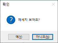 위와 같이 입력한 다음 실행하면 다음과 같은 메시지 박스가 나옵니다.